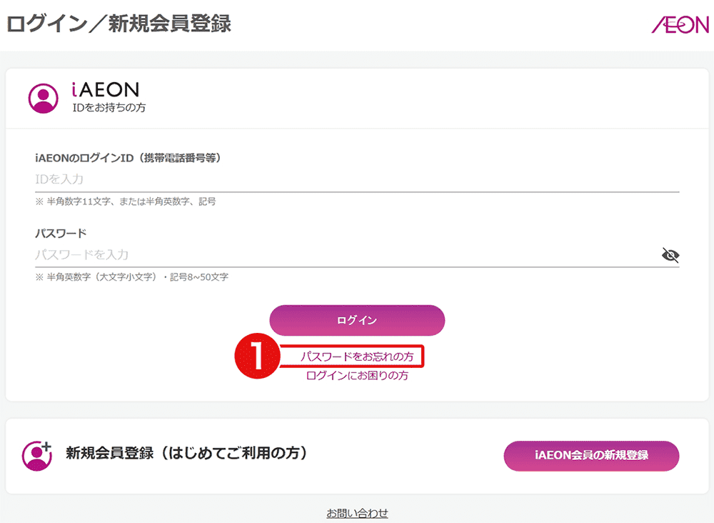 1iAEONログイン画面より「パスワードをお忘れの方」を押します。