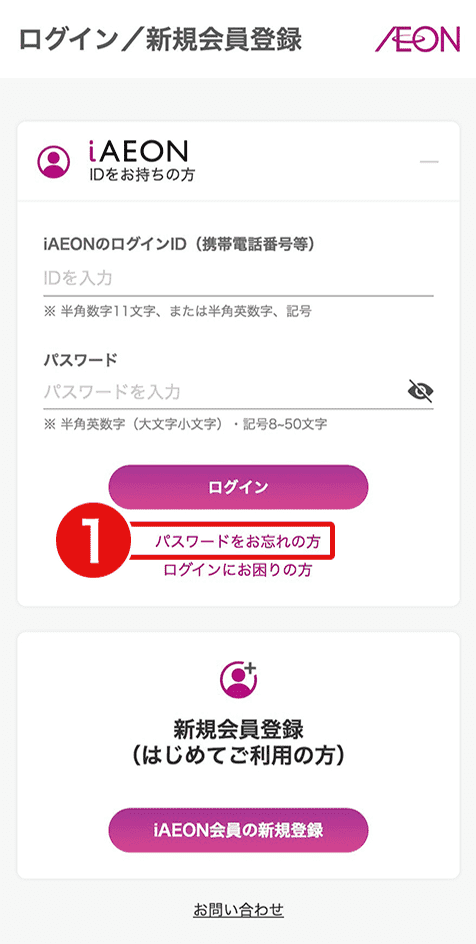 1iAEONログイン画面より「パスワードをお忘れの方」をタップします。
