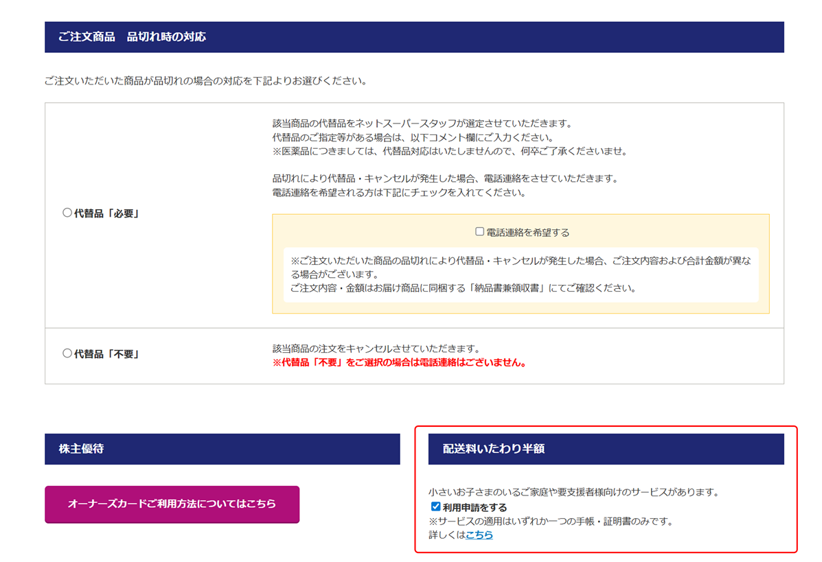 イオン東北ネットスーパーでは、会員登録時およびお客さま情報変更画面から、オーナーズカード情報のご登録が可能です。