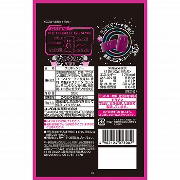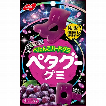 薄くて固い噛みごたえのあるハードグミのグレープ味です。