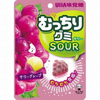 むっちり食感グミにパウダーコーティングをしたサワーグレープ味