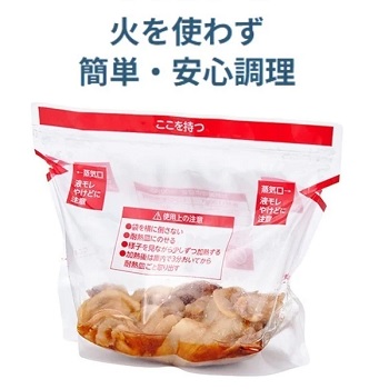 食材と調味料を入れてレンジでチンするだけで料理が作れます。食べたいときにすぐレンジ調理できるように、事前に下ごしらえして冷蔵庫にストックも可能。