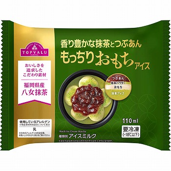 福岡県産八女抹茶を使用したアイスに抹茶パウダー、おもちと粒あんをのせました