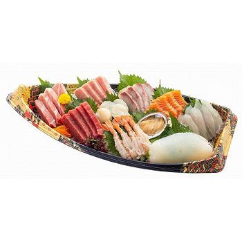 年末年始のごちそうに、食卓を彩る舟盛です。■本まぐろ大とろ・本まぐろ中とろ・本まぐろ赤身・ぶり・サーモン・ひらめ・ほたて・あわび・えび・いか■特定原材料/えび
