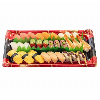 まぐろ、サーモンなど、10種のネタが入ったにぎり寿司です。■まぐろ、サーモン、いか、かれい、いくら軍艦、まぐろたたき軍艦、寿司えび、玉子、焼きサーモンハラス、煮穴子■特定原材料/卵・小麦・えび