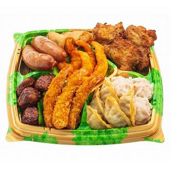 人気のお惣菜を盛合せた2-3人前のオードブルです。■海老チリ、海老フライ、肉団子、ポークフランク、春巻、手羽元あぶり焼き、かに風味焼売、揚げ餃子■特定原材料/卵・乳成分・小麦・えび・かに