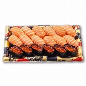 お子様に人気のサーモンといくらを盛り込んだ魚屋のにぎり鮨です。■サーモン・いくら ■特定原材料/小麦