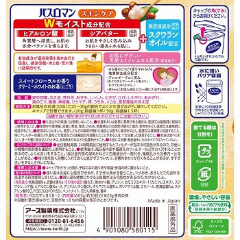 シアバターとヒアルロン酸配合(保湿成分)。くり返す乾燥肌にしっとり潤いを与え、うるおい感あふれる肌に。スイートフローラルの香りです。クリーミーホワイト(にごり)のお湯色です。